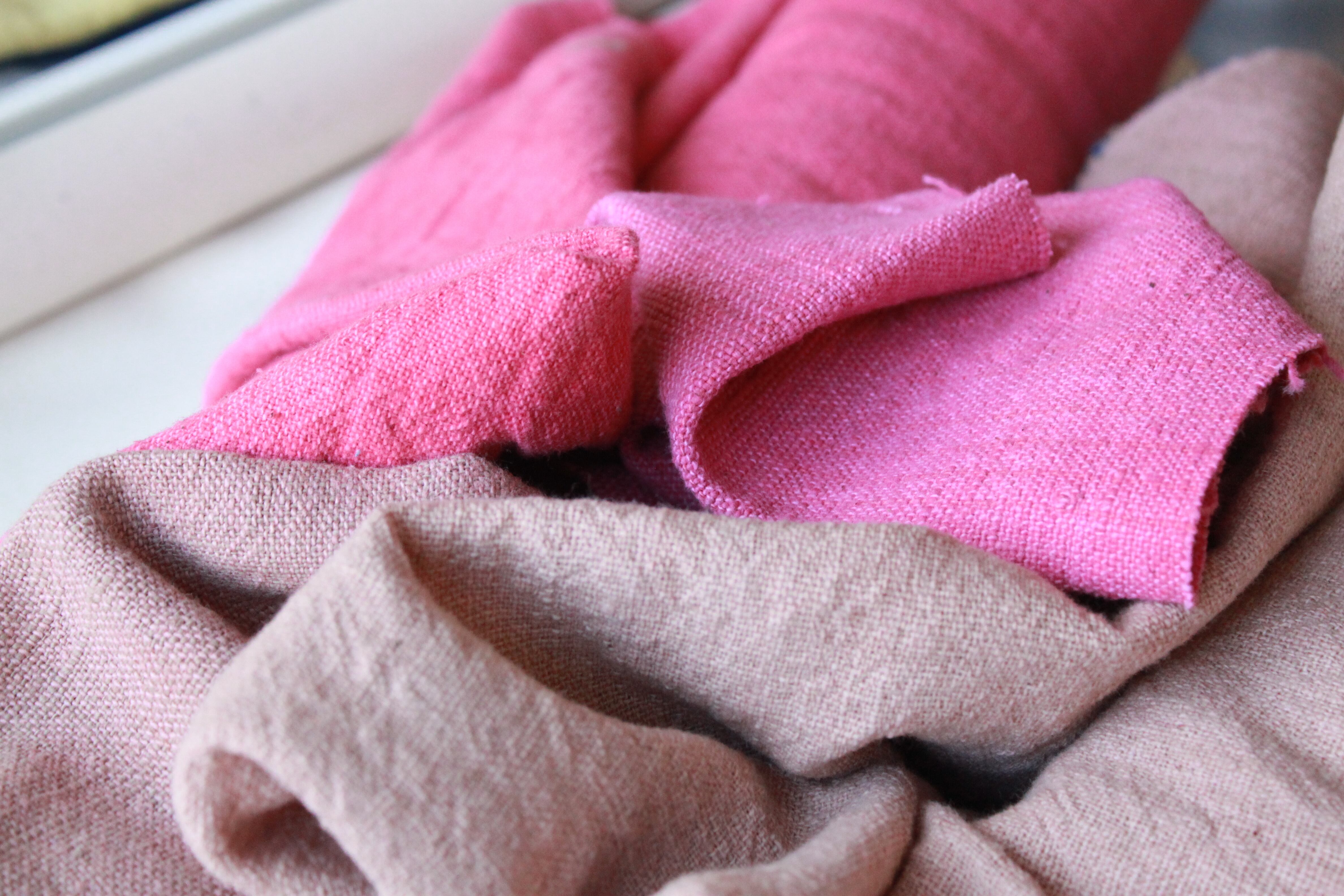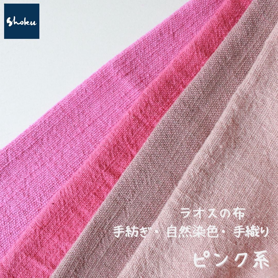 【ピンク系無地生地】ラオスの手紡ぎ・自然染色・手織り綿生地 352円/10㎝ Shokuの布