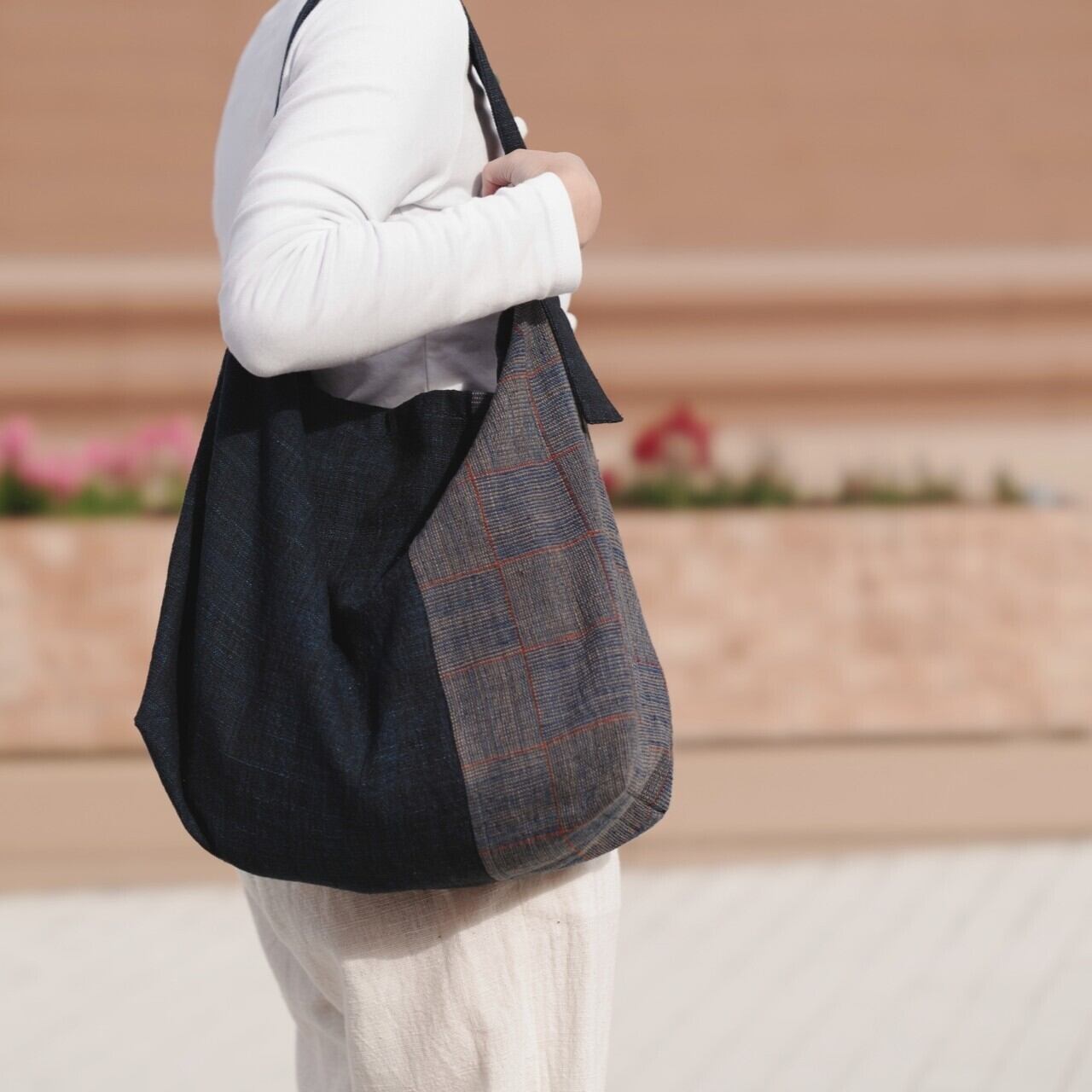 ワンショルダーのくったりバッグ 天然綿100% Shokuの布