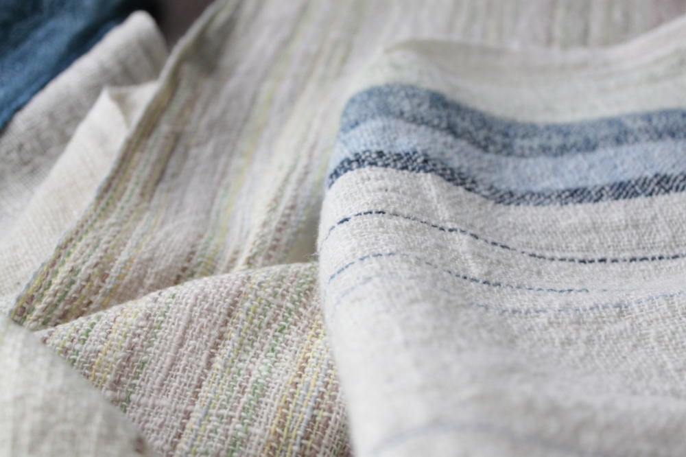 自然染色は、化学染色の布生地と比べ、洗うと色落ちし、空気を含み、柔らかい風合いになります。