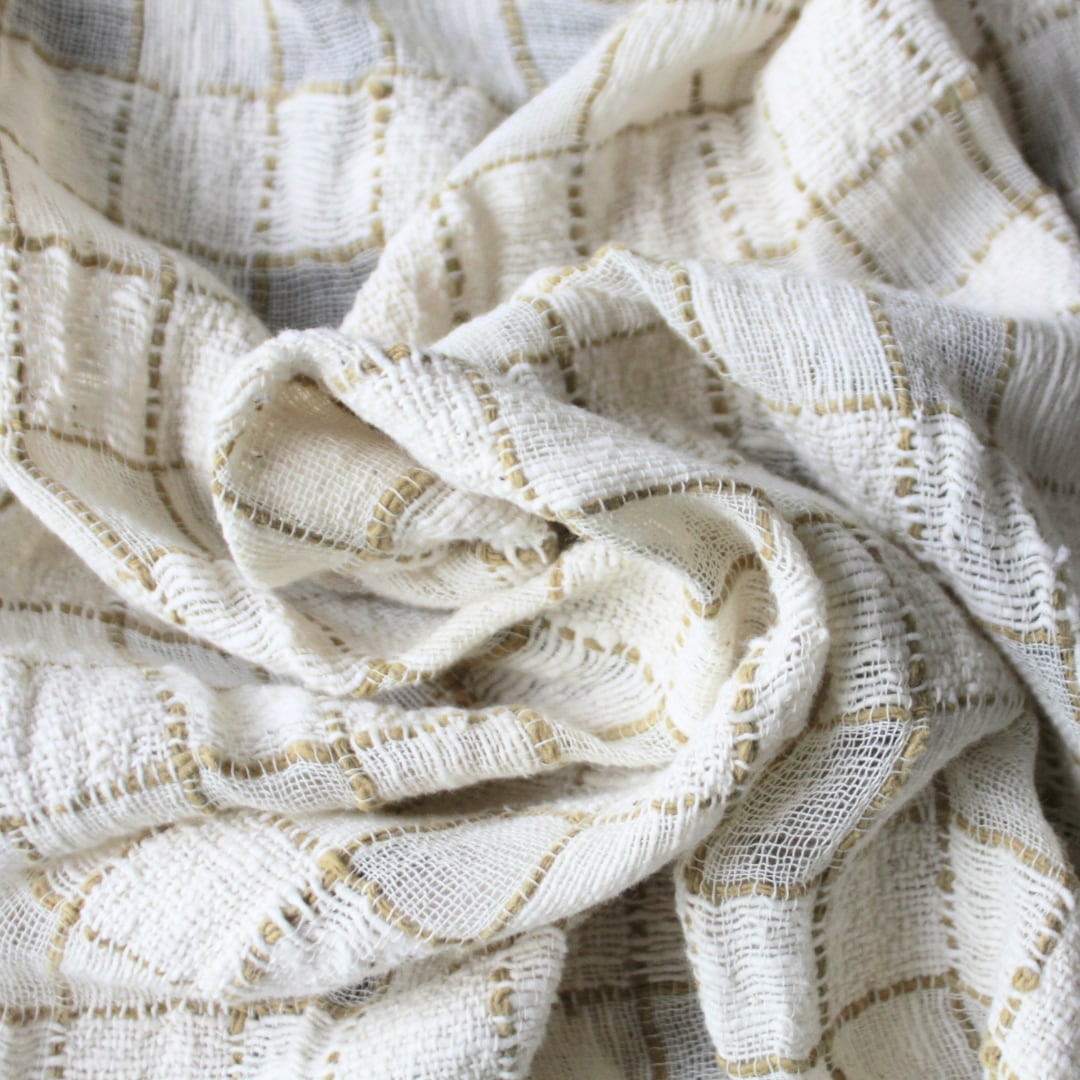 透け感のある格子のミャンマー生地。ショール、カーテンなどにおすすめ。