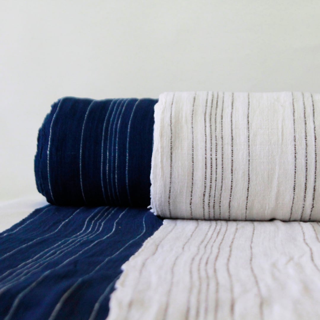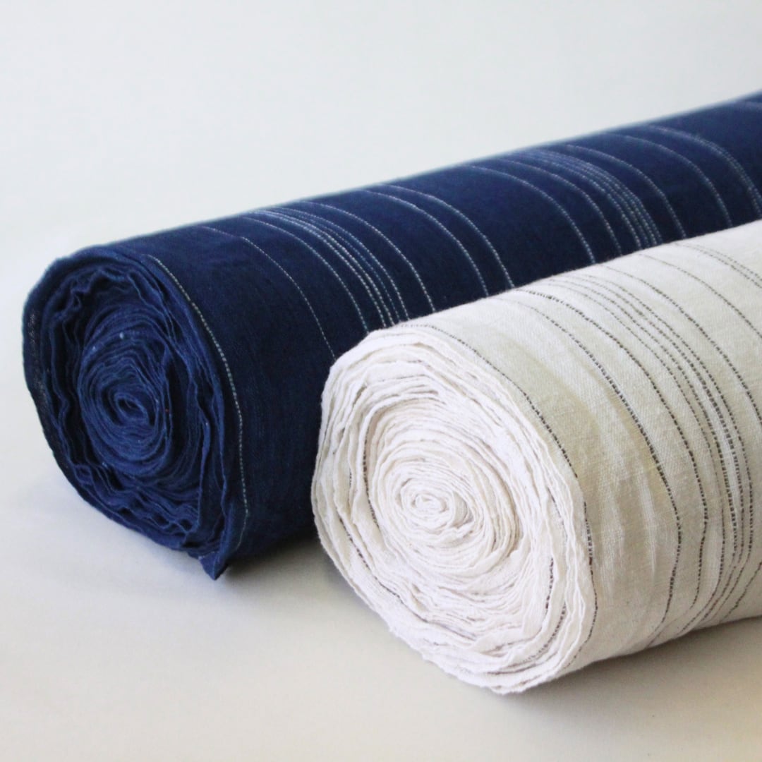 Shokuの布【ノイ村のストライプ生地】天然綿100%生地