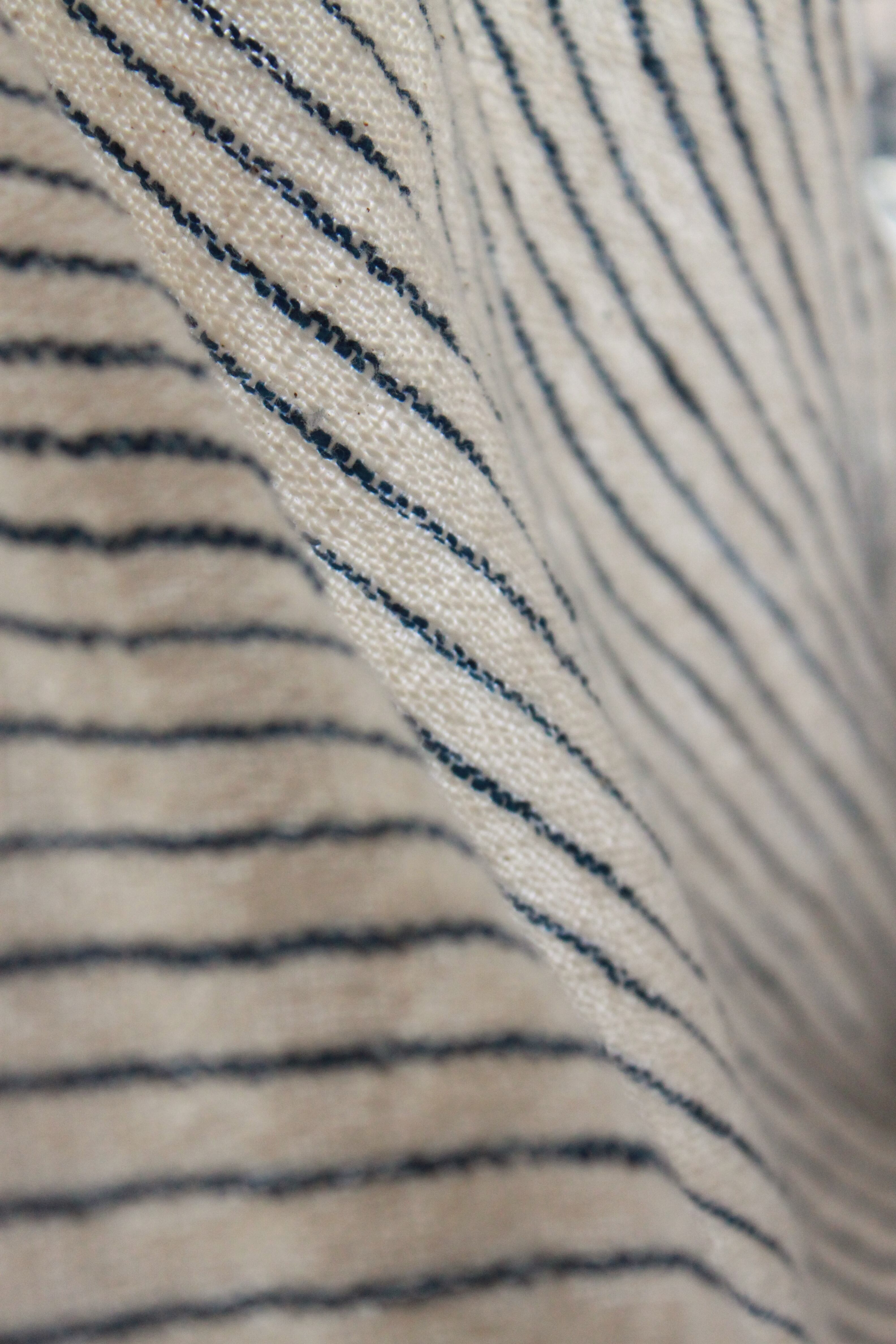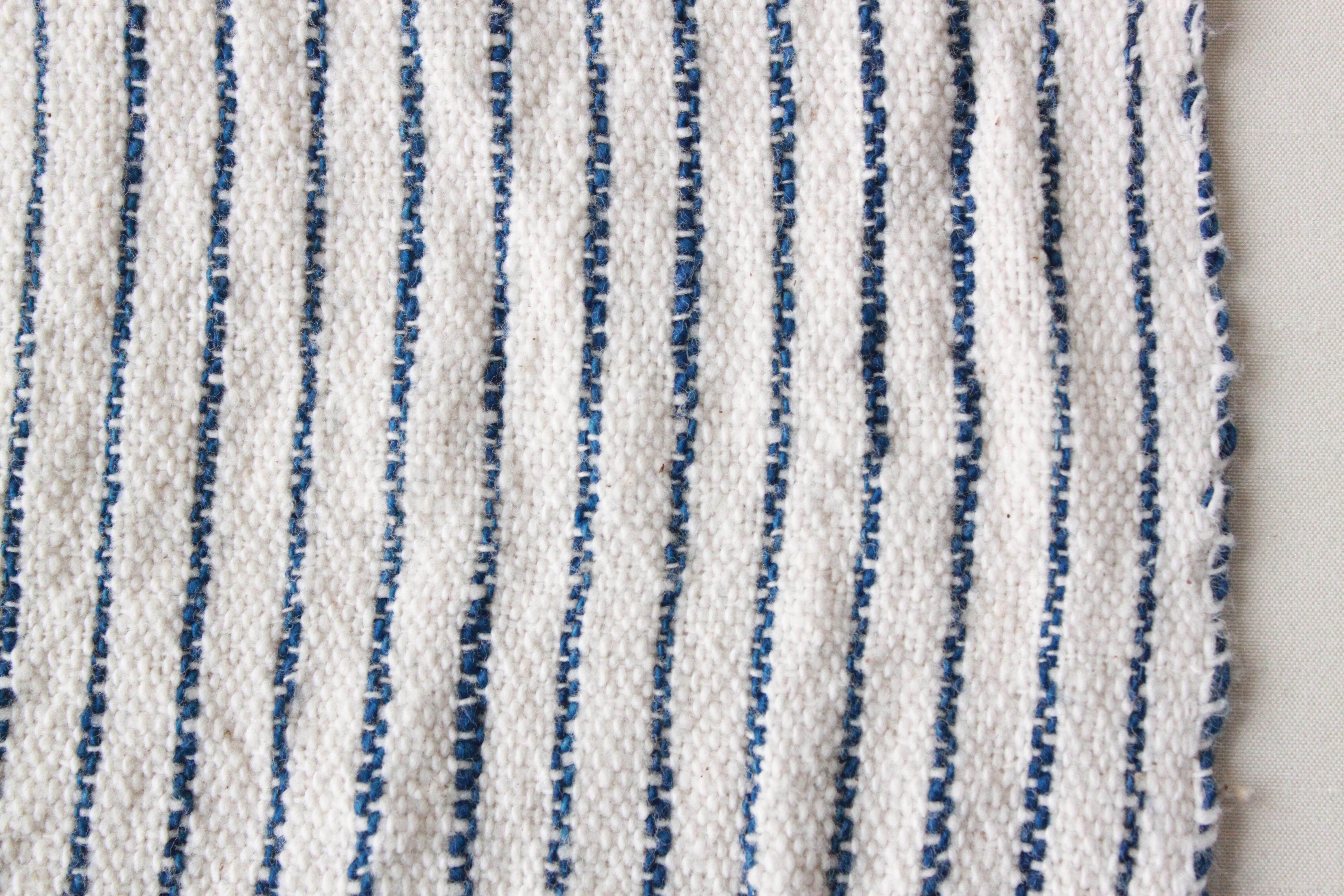 【縞柄生地】ラオスの布 手紡ぎ・自然染色・手織り 生成りに藍ストライプ綿生地 XAR-01(308)幅約86cm以上(10cm単位で販売いたします。) Shokuの布