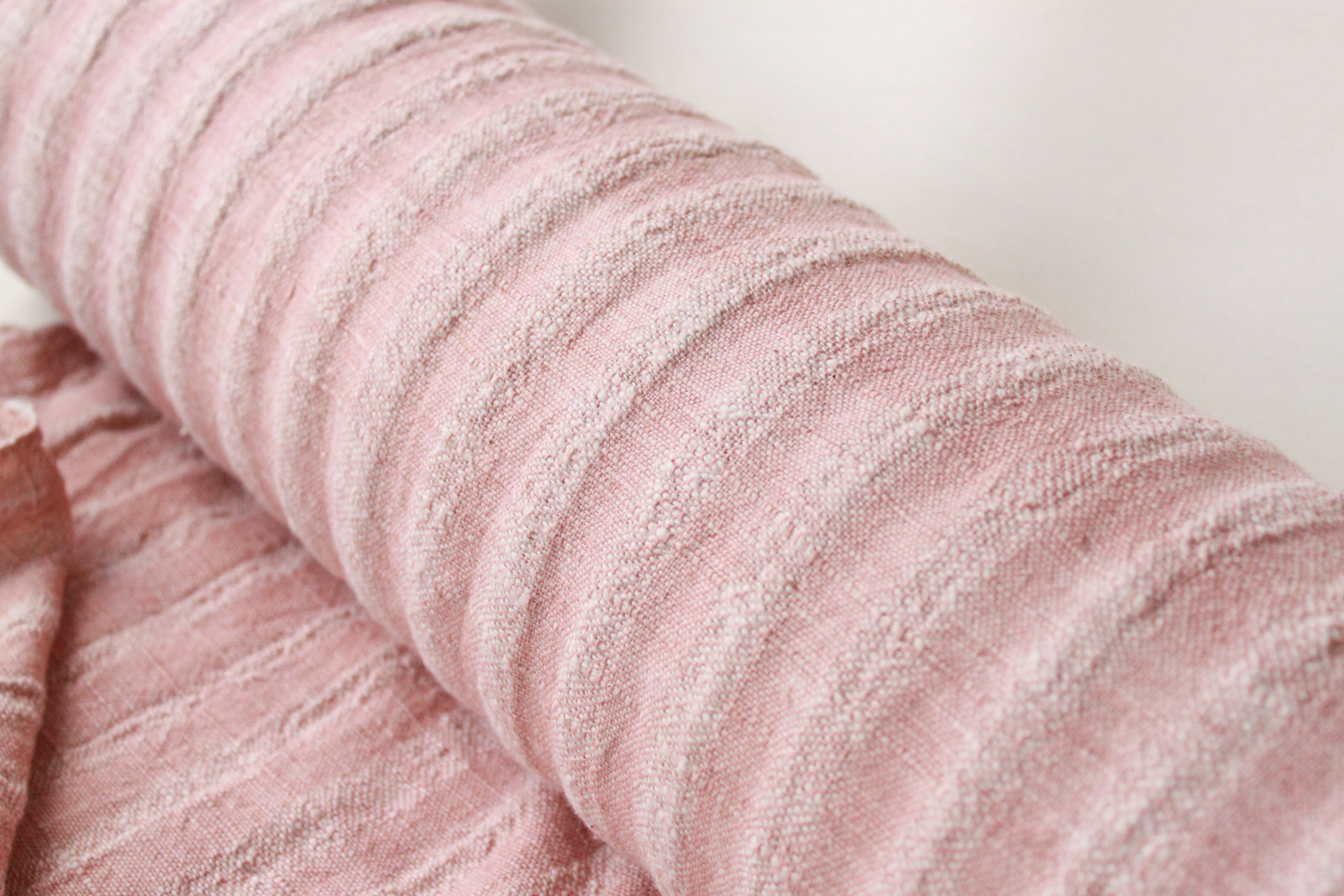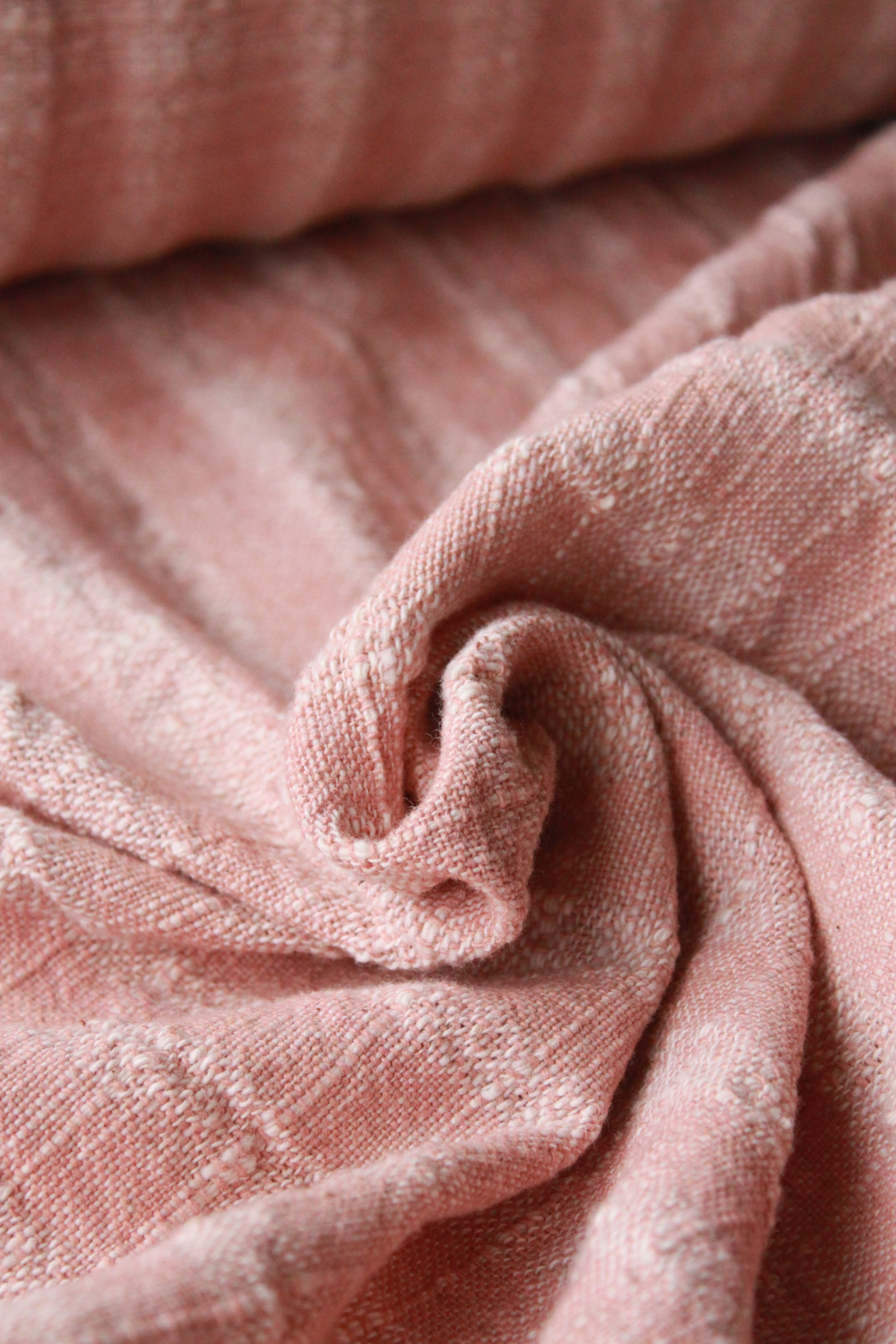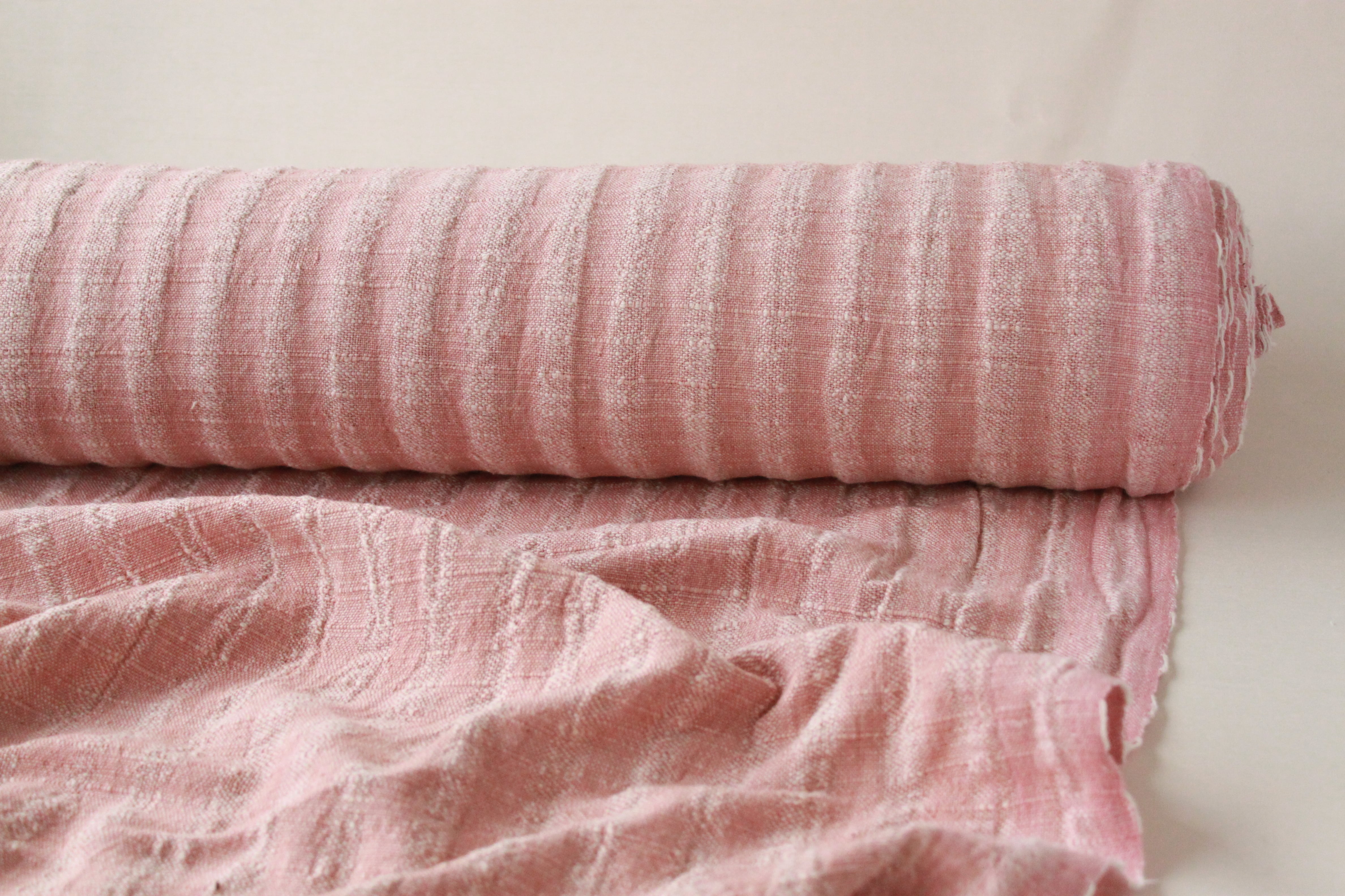 染めを得意とするナーニャン村の落ち着きのある桃色生地。平織ですが、密な織りと甘い織を繰り返すことで格子のような柄を表現してます。優しい肌触りでショールなどにもおすすめです。